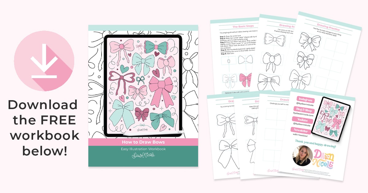 How to Draw Bows in Procreate. Learn ten cute ways to draw bows in my video tutorial. Plus, download a free practice workbook!